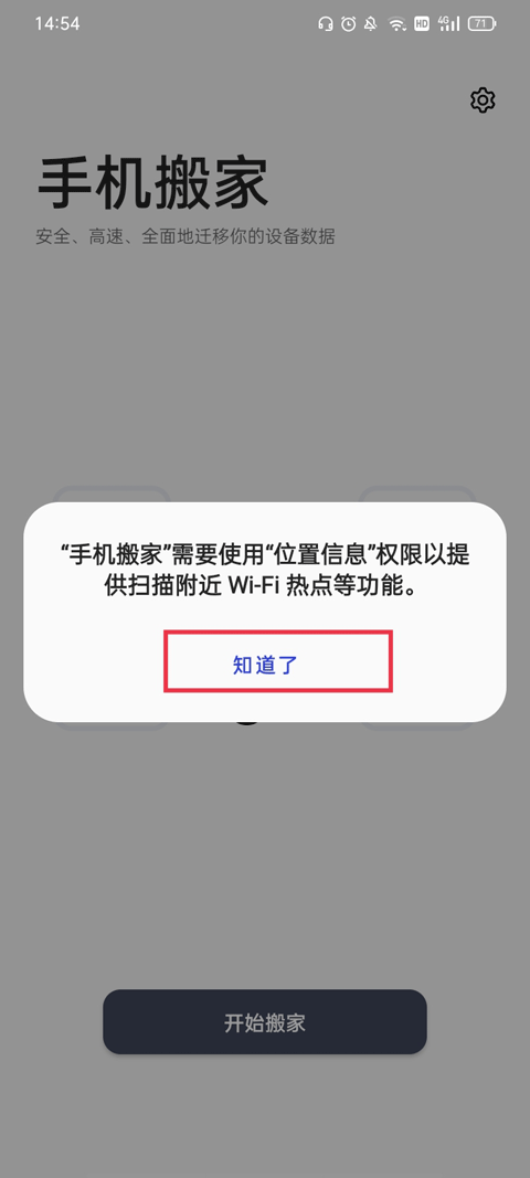 打開并進入主系統頁面后,點擊頁面下方那個唯一的按鈕“開始搬家”。