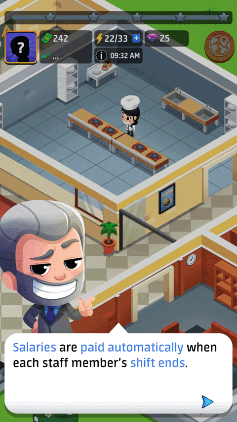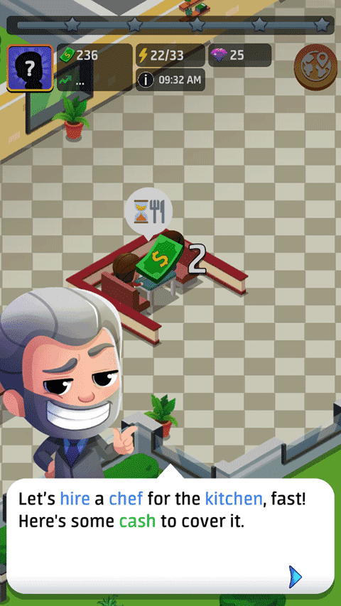 用賺到的利潤不斷對餐廳進行升級,解鎖更多桌位、支付員工工資,以此吸引更多顧客來店里就餐。