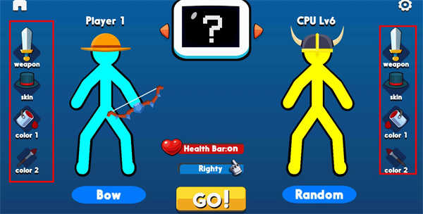 接著進入裝備配置界面,玩家能夠依據個人偏好,為即將出戰的火柴人搭配各類不同的發型、顏色等外觀方面的元素。