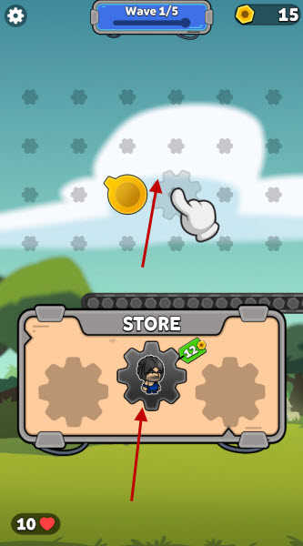 打開游戲后,將齒輪拖動到空閑區域以開始生成士兵。
