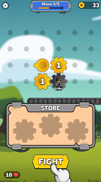 每次成功通關都能獲取新的齒輪道具,齒輪數量越多,士兵的產出速度就越快。