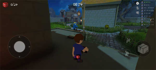 游戲左側區域用于操控移動,點擊右側的箱子圖標即可一鍵變身為箱子形態,以此躲避怪物的察覺。