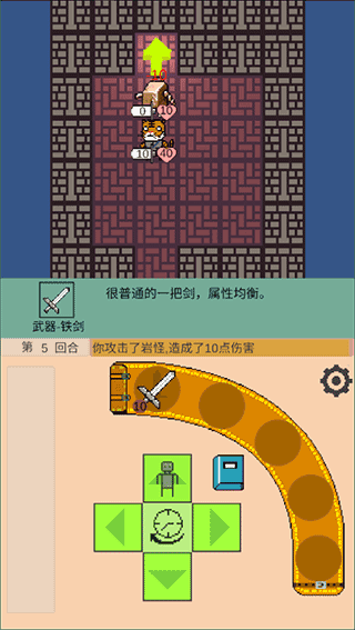 進(jìn)入游戲后,通過(guò)操作屏幕底部的四個(gè)虛擬按鍵來(lái)控制角色移動(dòng),拾取武器并將其裝備上,隨后發(fā)起攻擊以擊敗敵人。