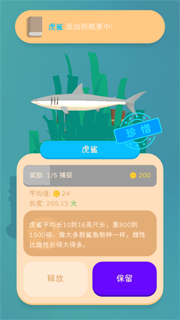 看到魚后點擊魚竿,接著把魚竿拋向魚;等看到魚上鉤時,點擊屏幕就能釣起魚,你可以選擇釋放魚,釋放后魚會被保留。