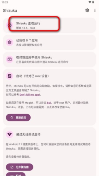 這里顯示shizuku服務(wù)未運(yùn)行。