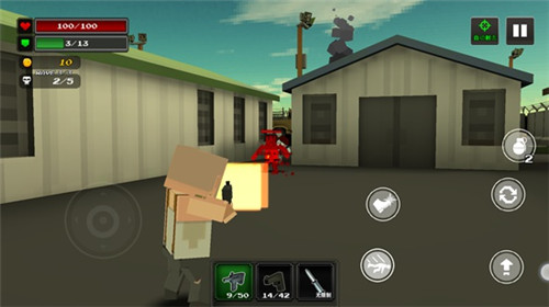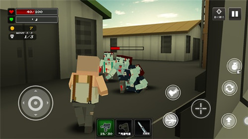 進入游戲后,你會出現在城鎮場景中,同時僵尸會持續涌現。你可以按住屏幕左下角的搖桿來操控角色移動,屏幕右下角則分布著攻擊、跳躍、換彈夾以及投擲炸彈等功能按鈕。