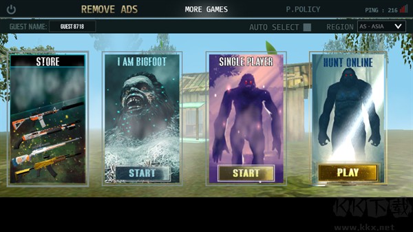 打開游戲后,能看到多種游戲模式,像商店、成為大腳怪、單人模式、聯機模式之類的。