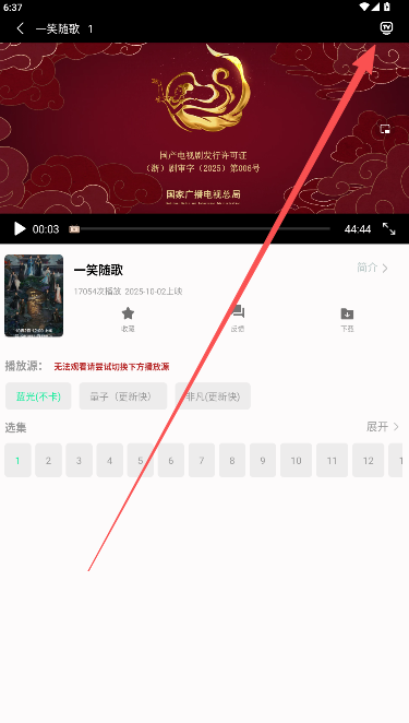在視頻播放詳情頁面內,點擊右上方的tv圖標。