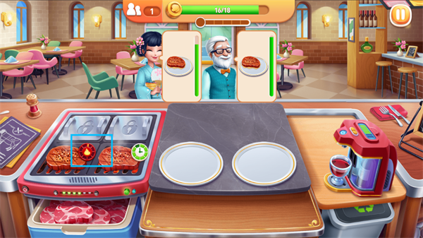 在本站完成安裝后點擊打開進入游戲,按照顧客的需求制作對應的食材。