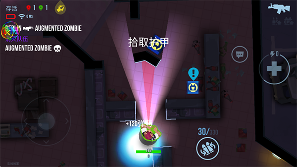 游戲采用俯瞰視角,玩家可通過左側搖桿操控角色移動,右側按鍵則用于執行換彈、治療等功能。整體操作較為簡易,對新手十分友好。