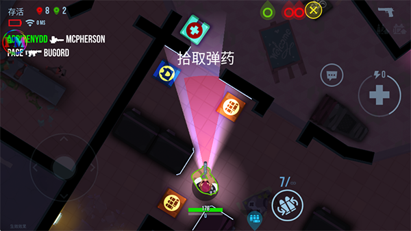 游戲里提供了多樣的武器與道具供玩家挑選,各類槍支在射擊范圍和作用效果上存在差異。在戰斗區域中,散布著子彈、護甲、醫療包、升級包等多種可拾取的道具。