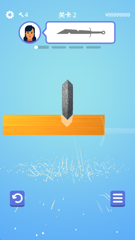關卡的難度會隨著挑戰逐步增加,越靠后的關卡里,刀具的構造就越復雜,挑戰時也需要更加細心才行。