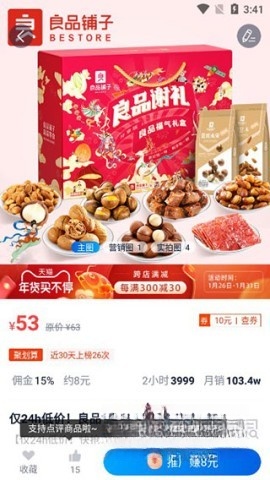 例如,選擇良品鋪子的年貨禮盒,推廣可賺8元;