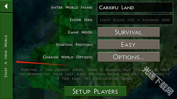 安裝生存戰爭,進入游戲后,點擊“新世界”創建游戲地圖。
