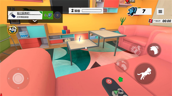 進入地圖后,左側按鈕用于操控貓咪移動,右側按鈕則負責貓咪的跳躍與互動操作。