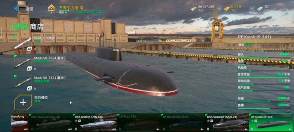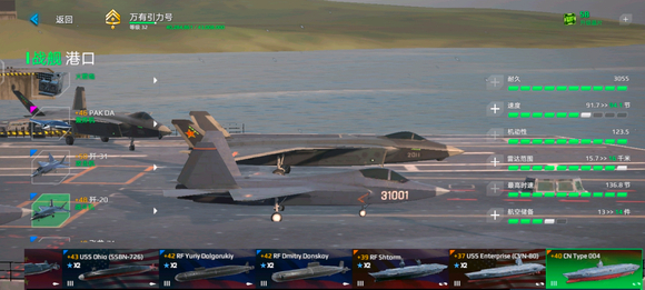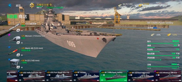 接下來是三級黃金船的推薦,首先要介紹的是彼得大帝號。這是一艘性價(jià)比極高的黃金船,其火力堪稱水面艦艇中的頂尖水平——配備了三枚導(dǎo)彈、兩枚魚雷、三枚火箭彈、一門主炮,還擁有六組防空武器。更值得一提的是,它的獲取成本僅需11000金條,并且搭配A22系統(tǒng)就能直接起飛作戰(zhàn)。
