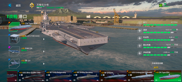 航空母艦在屬性加點(diǎn)時(shí),建議優(yōu)先提升耐久度,其次考慮速度與機(jī)動性的強(qiáng)化,最后再分配點(diǎn)數(shù)到雷達(dá)和聲吶的探測范圍上。