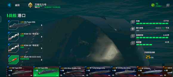 潛艇加點(diǎn)時(shí),優(yōu)先考慮耐久屬性,其次是速度、機(jī)動性和氧氣容量,最后再點(diǎn)雷達(dá)和聲納范圍。