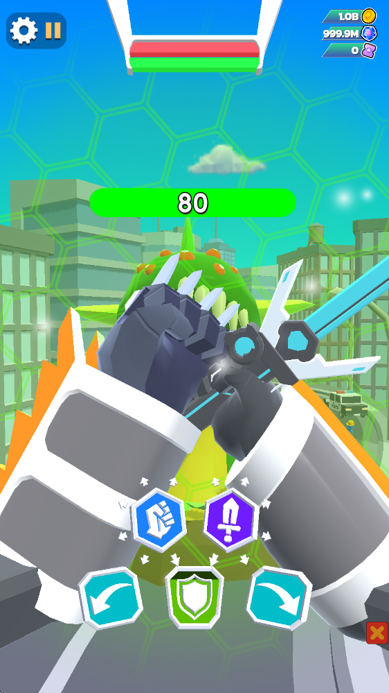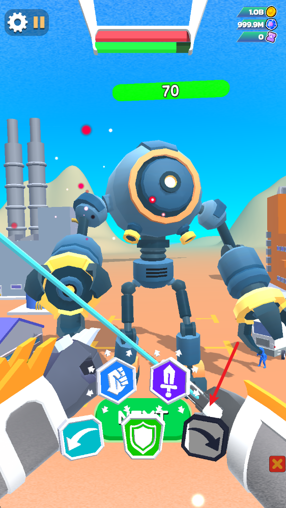 戰斗打響后,我們會與其他機器人展開一對一的較量,當對手發起攻擊時,點擊相反方向就能完成閃避。
