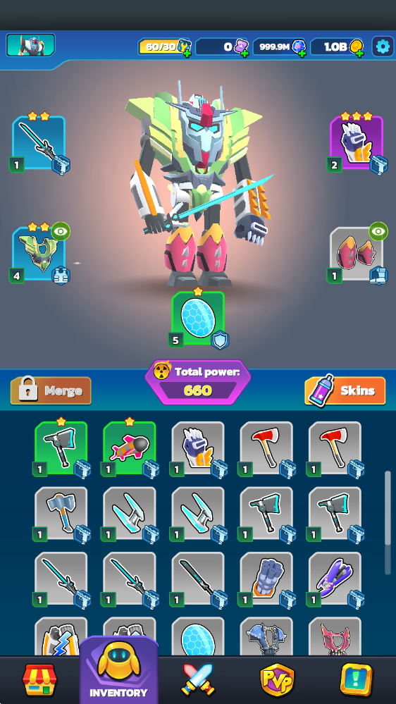 游戲內設有種類豐富的皮膚,你可以自由搭配頭部、身形與配色,打造出獨一無二的專屬機器人。