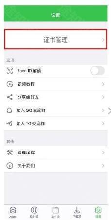 第一步:啟動GBox應用,進入設置界面,點擊頂部的“證書管理”按鈕。