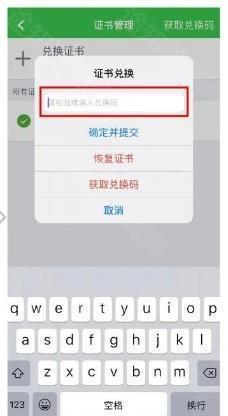 第三步:點擊“+兌換證書”按鈕后,會彈出“證書兌換”操作窗口,在窗口中輸入兌換碼并點擊“確定并提交”,就能完成證書的添加。