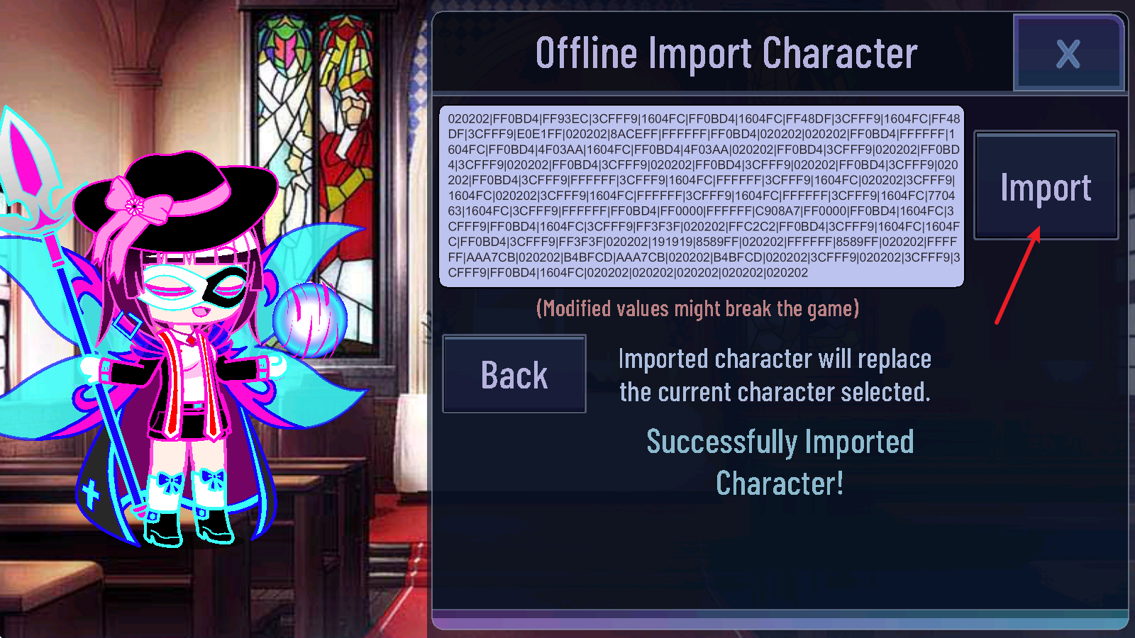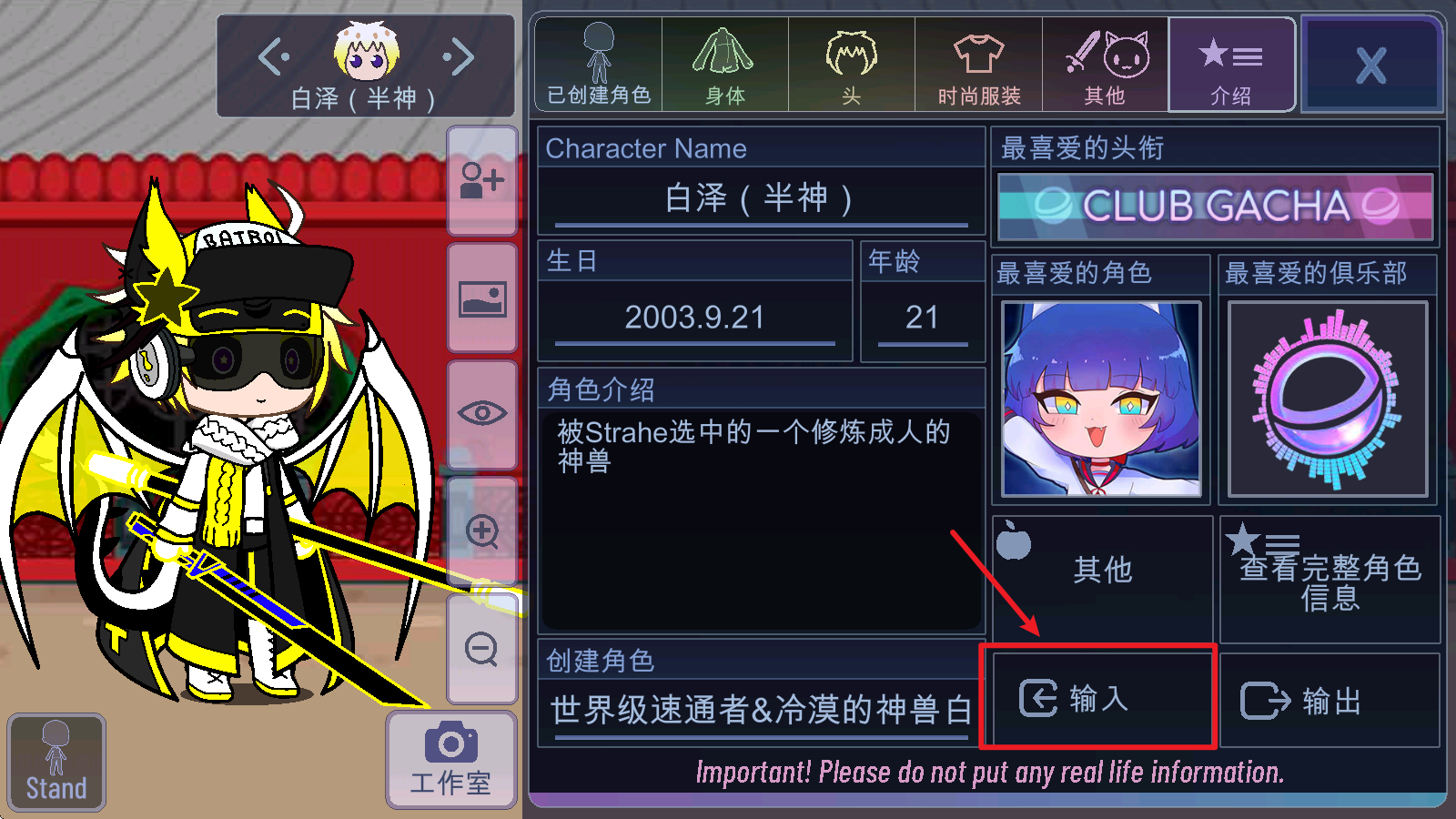 最后在中間的輸入框里粘貼好人設代碼,點擊import就能獲取這個人設了。