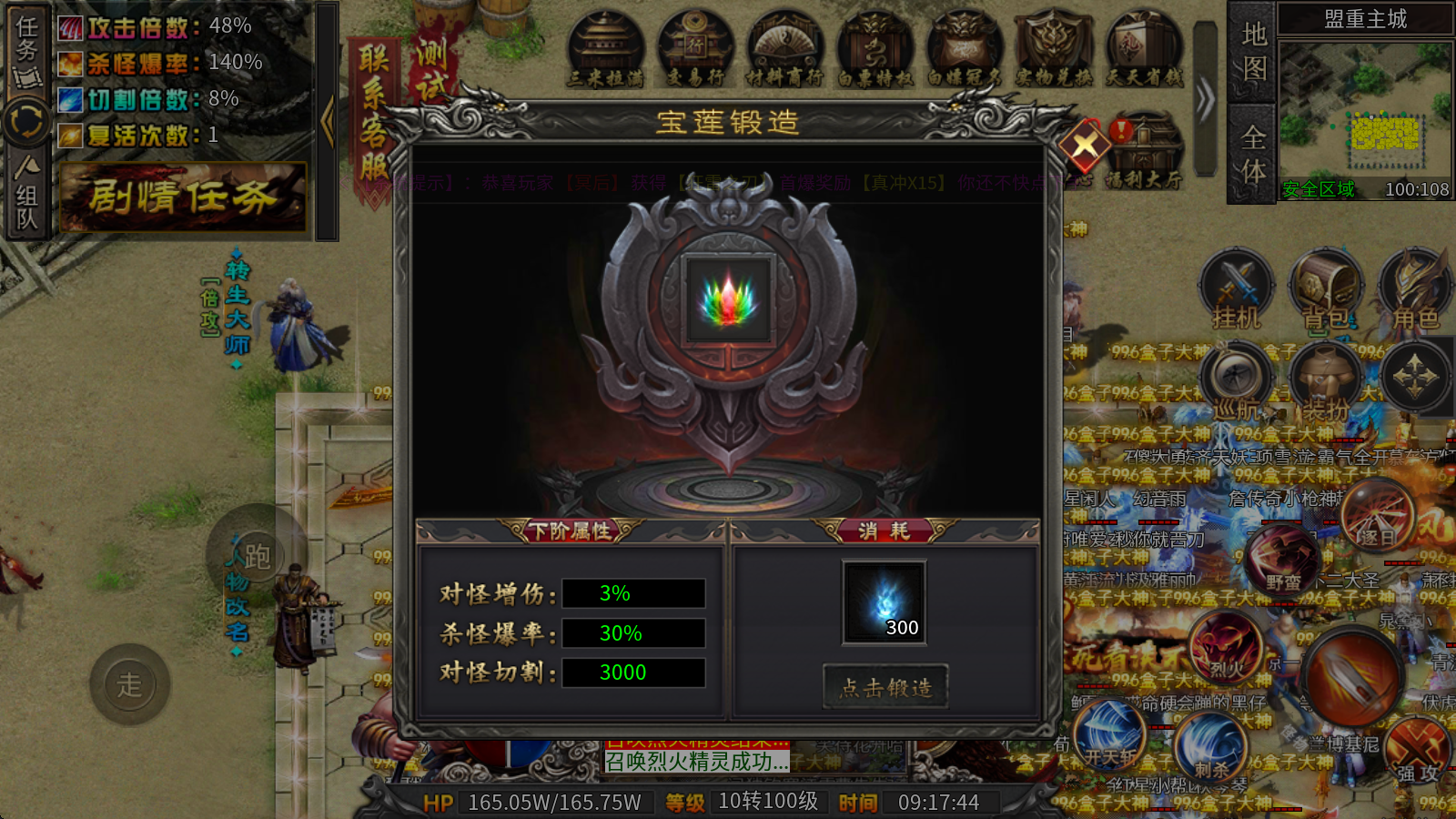 轉生大師系統:通過消耗仙丹與元寶完成轉生操作,每提升一轉都能帶來攻擊、體力、防御屬性的加成效果,同時還會提高鞭尸的概率,其中仙丹可通過擊殺怪物獲取。