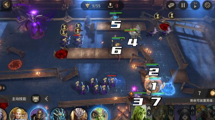 1號位安排守護者奧拉格來吸引BOSS的火力;2號位部署AOE法師新娘,7號位放上樹奶;3號位先讓貪婪在第一波召喚弓箭手,新娘用普攻就能解決掉這些弓箭手(也可以等弓箭手進入射程后就釋放第一個終結技);等弓箭手被清理完后,再召喚貪婪。