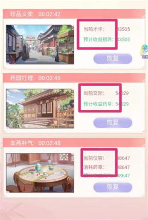 玩家的各項屬性與游戲的經濟系統(內務打理)關聯緊密:才華數值越高,獲取的銀兩資源就越多;交際能力越強,藥草資源的收益也就越高;心計水平越高,推進主線劇情時消耗的元氣就越少。