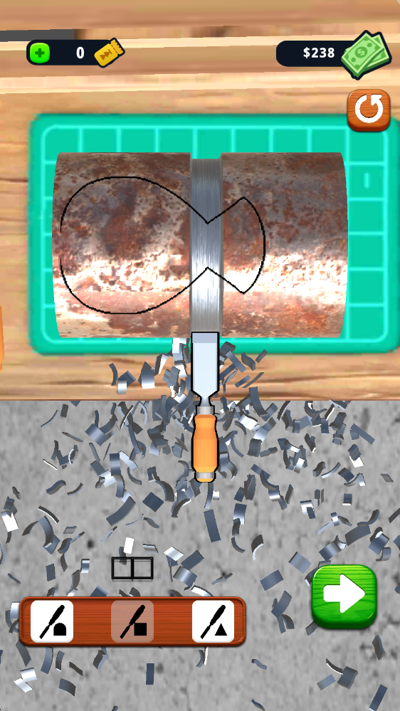 在游戲里,我們把銼刀拖到木頭旁邊,就能依照給定的形狀打造木制品了。