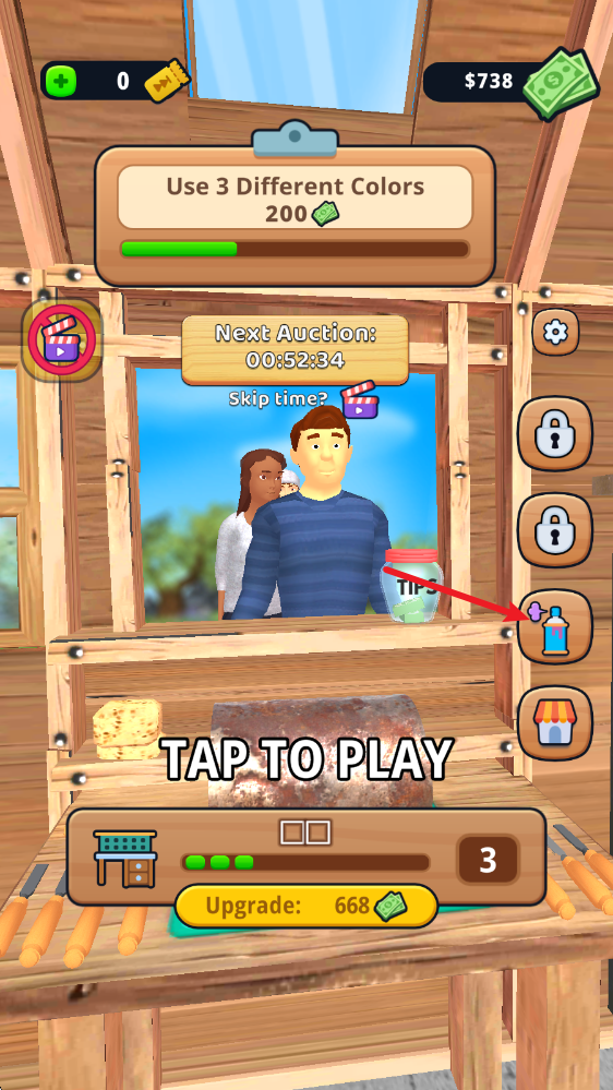 在游戲里,我們做好的木制品能隨意噴上漂亮的顏色和花紋,想知道如何解鎖更多花紋嗎?首先點擊右邊的噴漆圖案。