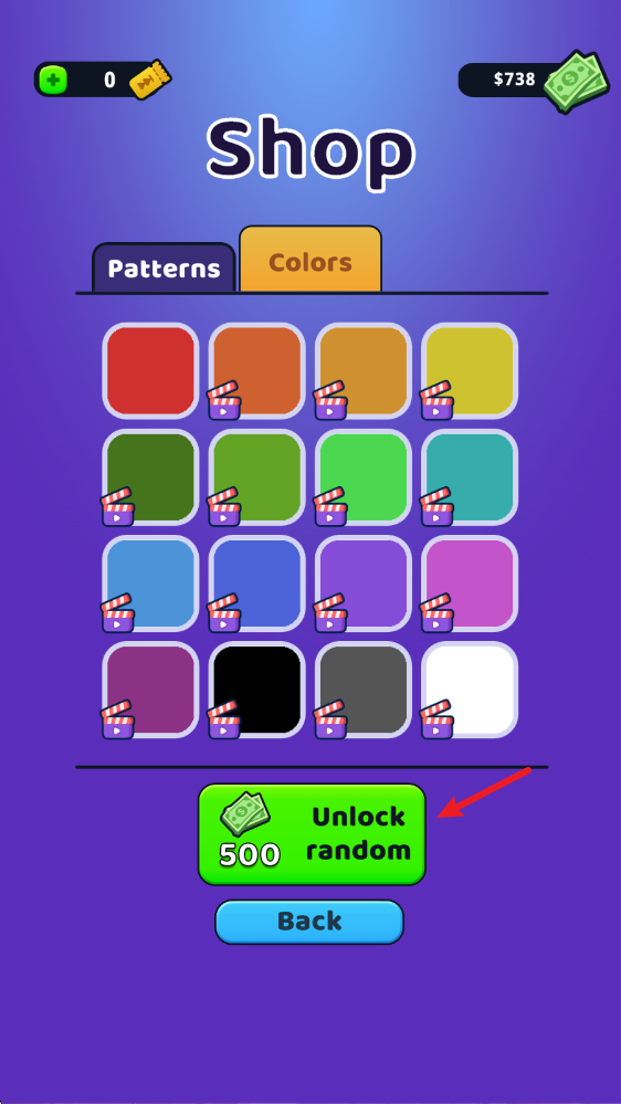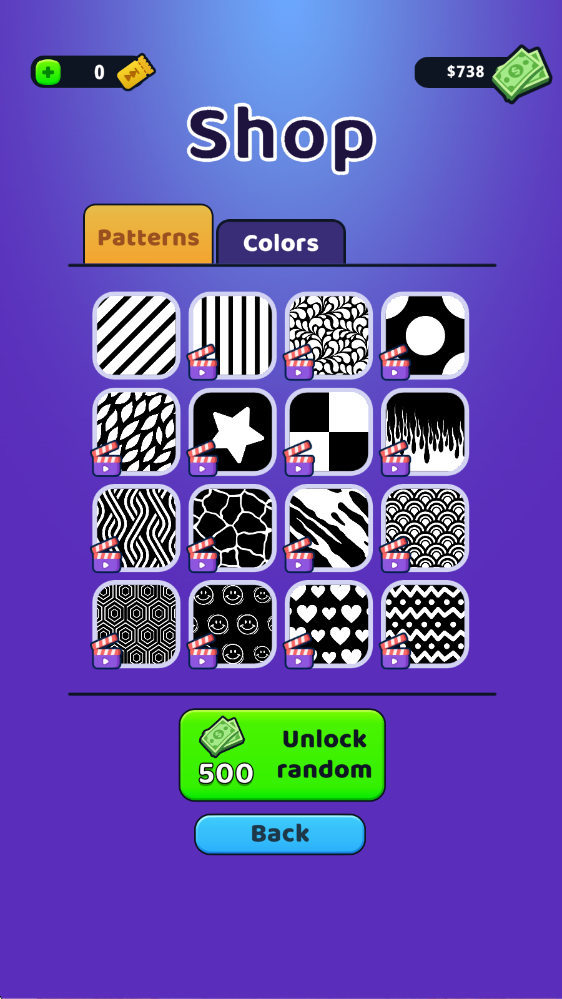 然后點擊上方的第一欄,在這個位置就能看到各式各樣的花紋,既可以通過付費來隨機解鎖,也能選擇觀看廣告進行定向解鎖。