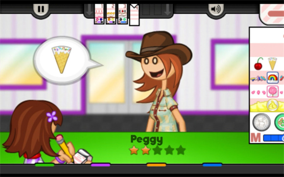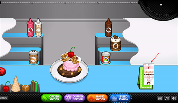 制作完成后,把右上角的菜單拖到菜單牌上,顧客就能看到自己點的冰淇淋了。他們會依據冰淇淋的品質打分,還會給小費當作獎勵。