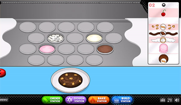 根據屏幕右側的菜單提示,第一步要選擇制作餅干。確定好餅干的品類后,記得給餅干加上顧客偏好的配料。
