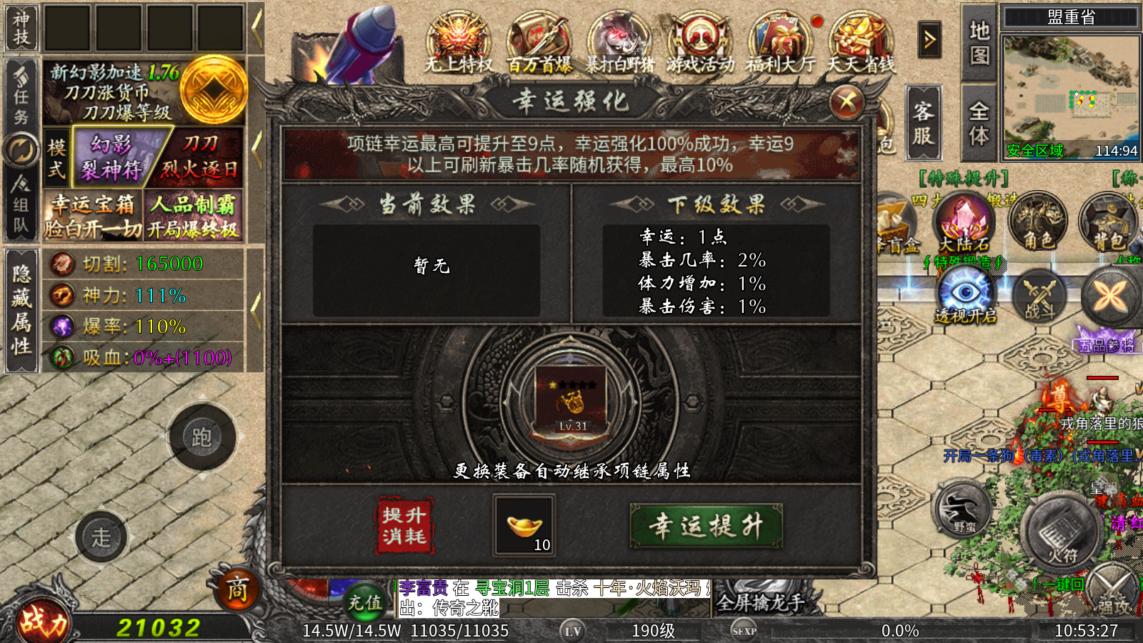 幸運強化:項鏈幸運最高可提升至9點,幸運強化100%成功,幸運9以上可刷新暴擊幾率隨機獲得,最高10%。