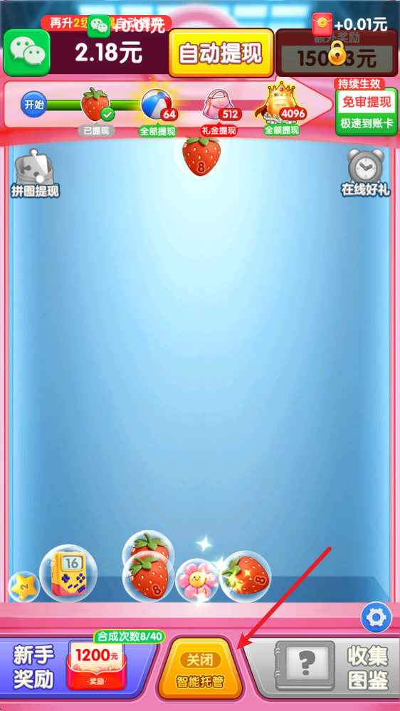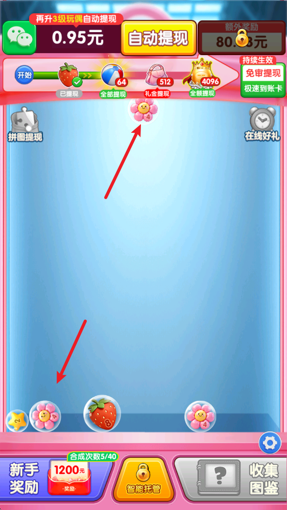 合成出4級玩偶后,我們還會解鎖智能托管功能,它能幫你自動合成玩偶。