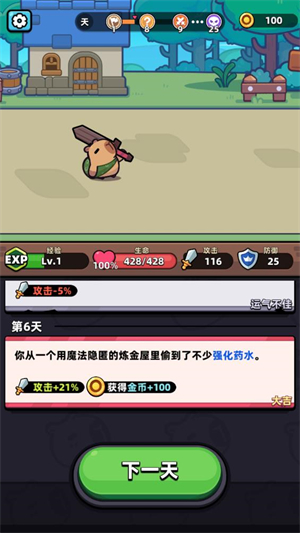 正式啟動后,點擊“下一天”即可推進進程,期間會隨機觸發一種事件,具體出現何種事件完全取決于玩家的運氣。