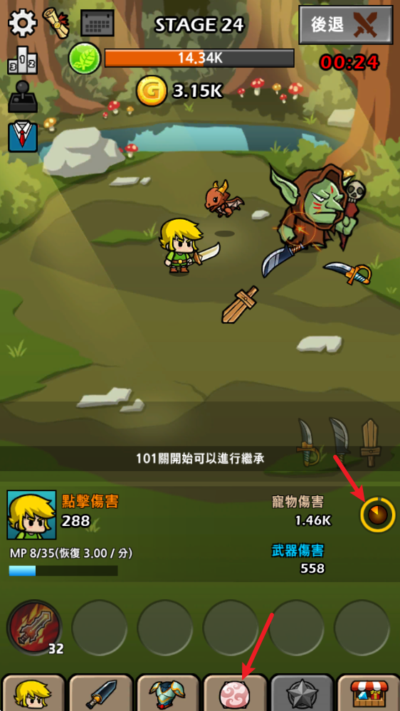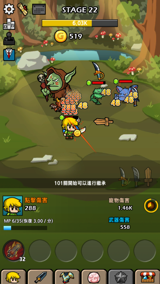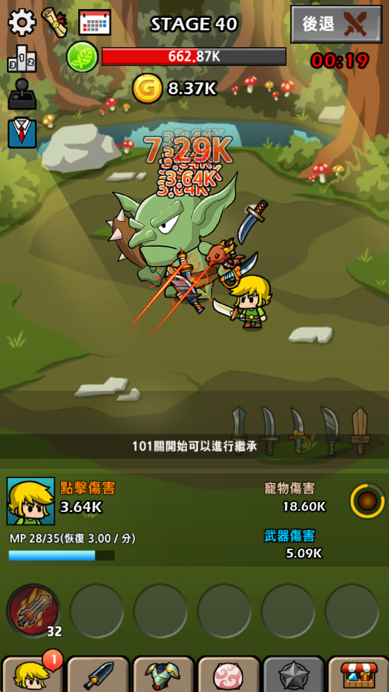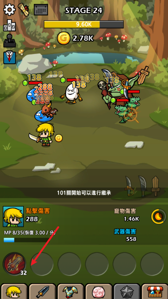 進入游戲后,點擊屏幕即可控制勇者進行戰斗。