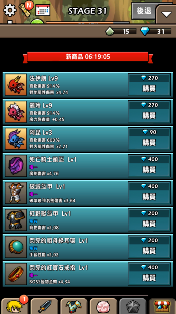 在商店里,能夠花費鉆石去購置一些更加強力的裝備和寵物。