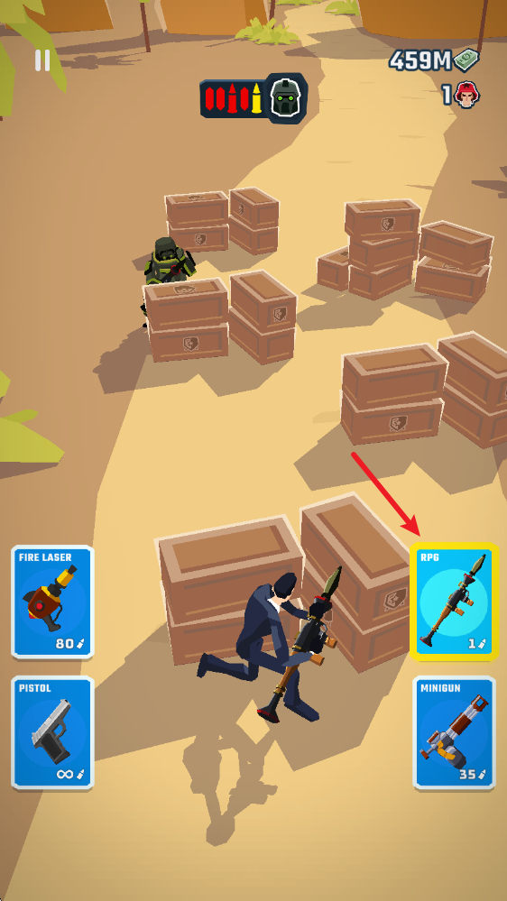 進入戰(zhàn)斗狀態(tài)后,我們會隱蔽在掩體后方,輕觸屏幕就能發(fā)起射擊。