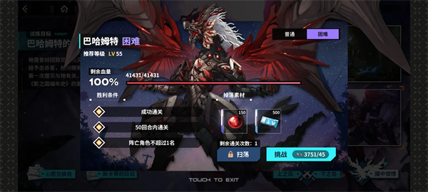 活動里的BOSS材料關(guān)卡,普通難度拿到三星獎勵后就別再打普通了,給的材料會少不少。困難難度哪怕沒通關(guān)打完也能有150材料,要是想刷困難三星然后掃蕩,可以借個R10的王女黑鳥,兩刀就能解決BOSS;不過老鷹血量比較厚,得提前算好血量再打。