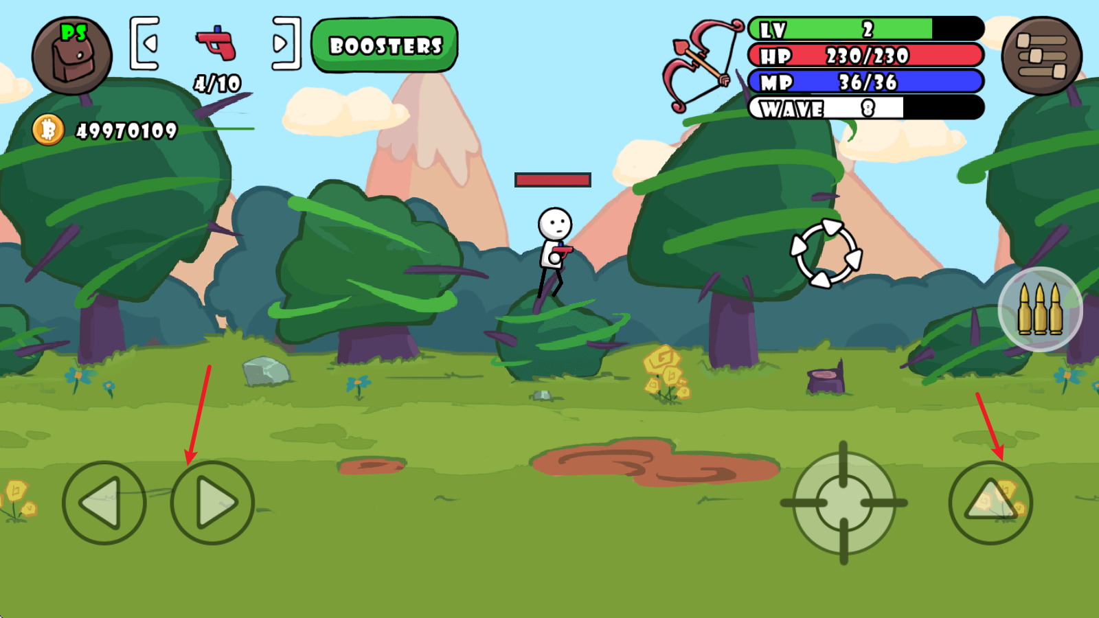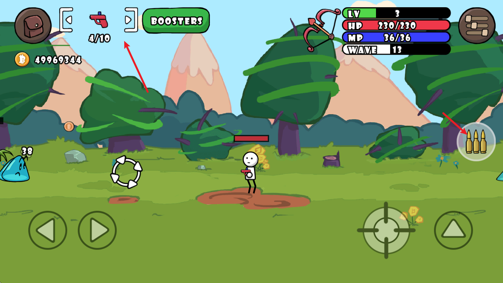 左上角可以看到自己的武器和子彈,子彈不足后點擊右側按鈕換彈。