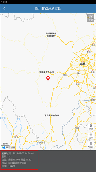 地震速報用戶能夠借助地圖了解震中的具體行政信息,還能查看震中周邊縣城、醫(yī)院、學校等設(shè)施的分布狀況。