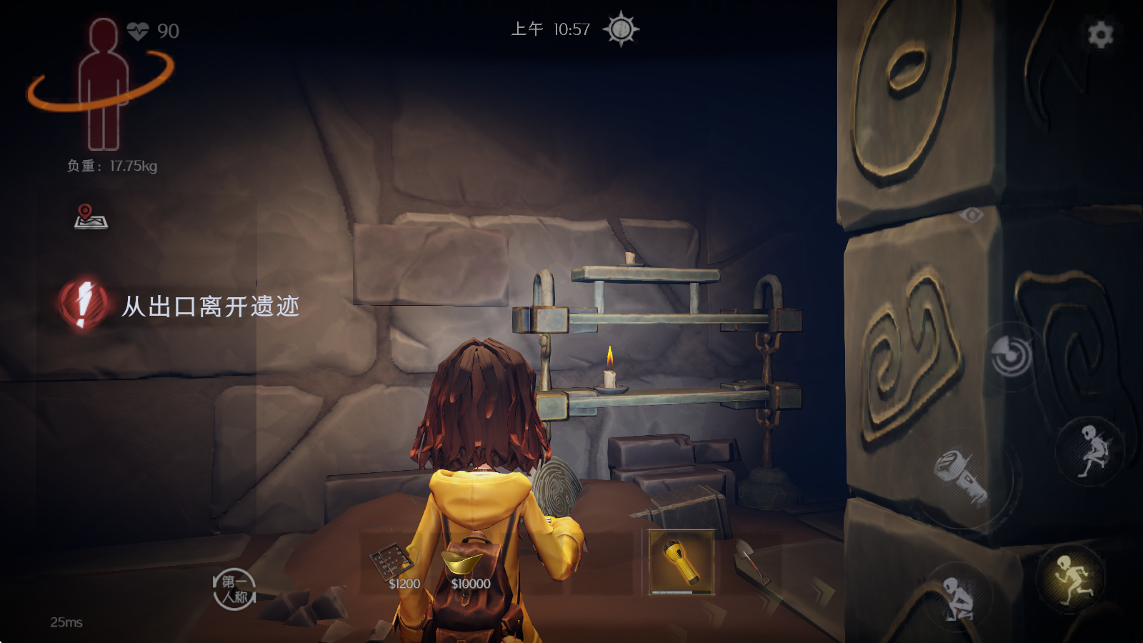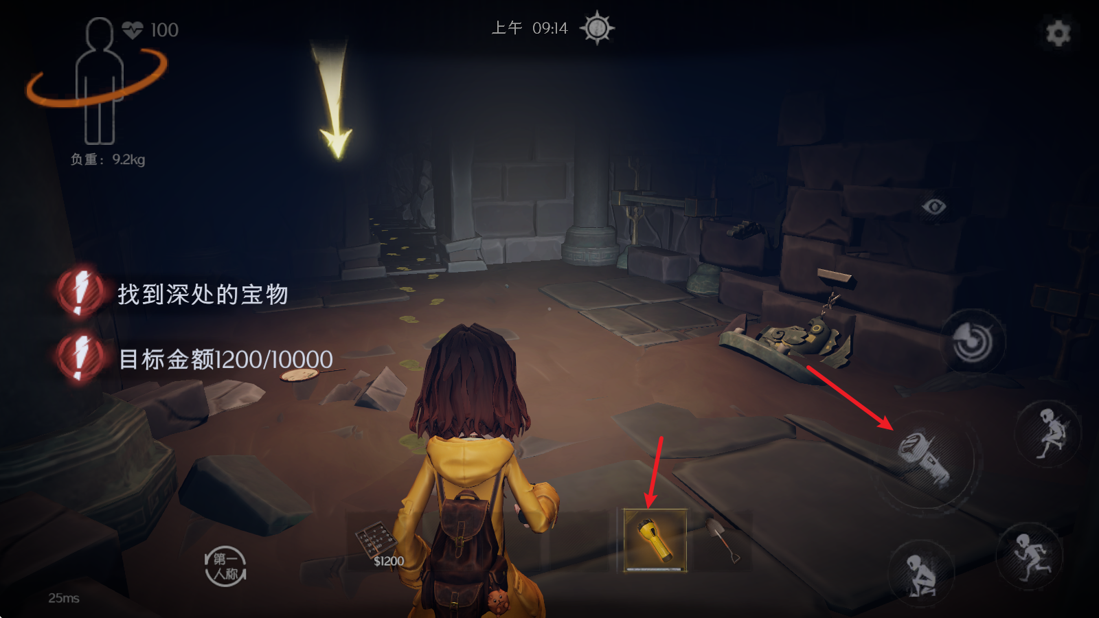 下方設有各類道具可供切換,切換后右側會同步顯示對應的功能按鈕,像開啟手電筒之類的操作都能通過這些按鈕實現。