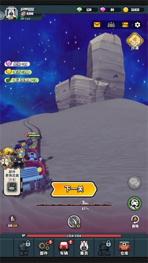 進入關卡后車輛會自動攻擊出現的怪物,當消滅一定數量的敵人后就可以挑戰boss。