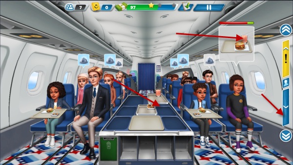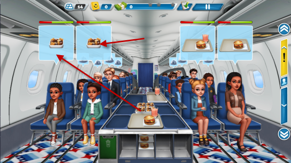 乘客頭頂會顯示出其所需的食物,只需把對應的食物移到他頭頂就行。