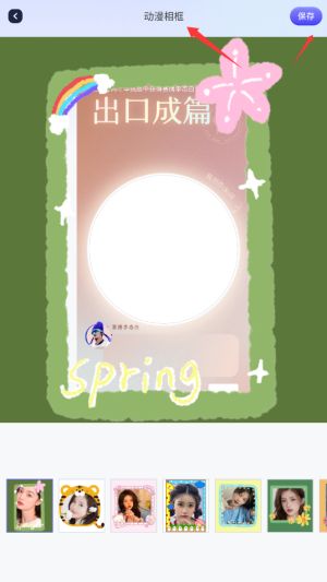 3、選擇手機相冊中的照片后,系統(tǒng)會自動套用相框效果,點擊保存即可生成作品。