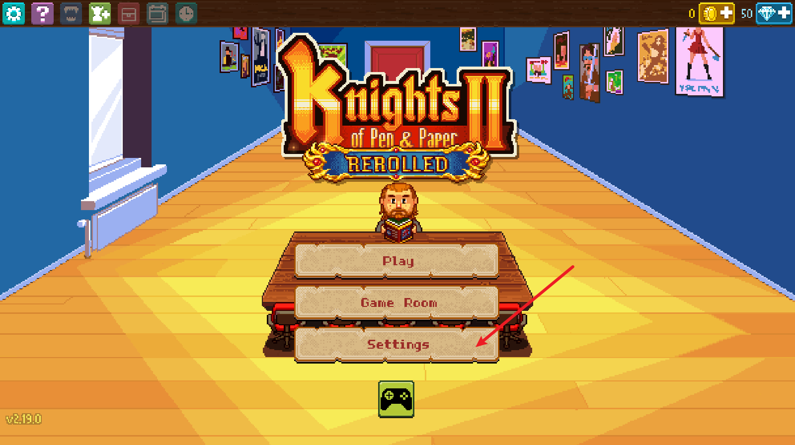 進入游戲后,選擇最后一欄的settings。
