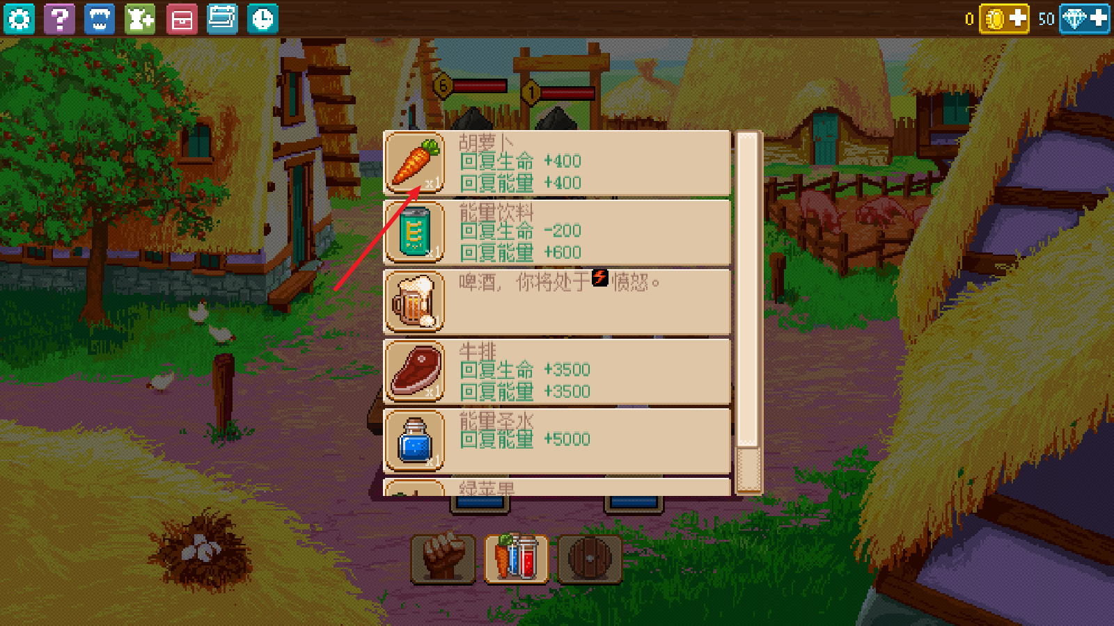當血量不多的時候,可以使用消耗品恢復。